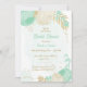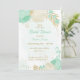 mint green & white flowers with gold leaves bridal shower invitation