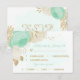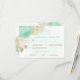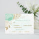 Romantic mint green & white flowers with gold leaves wedding response card with meal choice option.