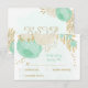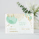 Romantic mint green & white flowers with gold leaves wedding response card.