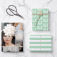 Personalised wrapping paper sheets perfect for graduations or sweet sixteen celebrations with a photo collage where you can add 11 of your own photos, a wrapping paper sheet with initials in white against a mint green background, and one with chic mint green and white stripes.