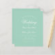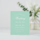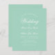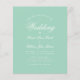 A simple, minimalist budget wedding invitation. It has only white text on mint green background. The word Wedding and the names are written in an elegant calligraphic script.