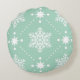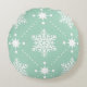 Festive Mint Green and white snowflakes christmas pattern on round pillow.