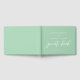 This soft mint green wedding guest book features chic white typography for a sweet spring outdoor ceremony. Simple and elegant script on tranquil solid pastel green guestbook for a garden reception.