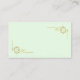 The back side of the business card is the same shade of soft mint green as the front and it features two gold foil decorative corner frames in the top right and bottom left corners.