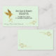 This lovely business card features a soft mint green background on both sides of the card. The front features an image of a gold leaf hummingbird with a gold leaf decorative corner frame in the bottom right corner.