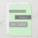 Personalised baby shower invitations in elegant and modern light pastel mint green, dark charcoal grey and white vintage retro chevron zigzags stripes pattern. Customisable with your text, contact us to request a colour change.