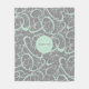 This intertwined loops pattern fleece blanket features light grey and mint green oval ring shapes randomly patterned over a darker grey background - her monogram and name on a mint green circle graphic are customisable - by katz_d_zynes