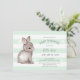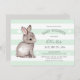 Mint Grey Stripes Bunny Heart Baby Shower Invite