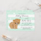 Simple and cute baby shower invitation features little brown bear and dainty white hearts on a mint and white stripes background. Personalise with your invitation detail in grey. Neutral in colour, perfect for baby boy or girl. Use the customise/personalise button(or link) to change font style, size and or colour.
