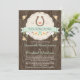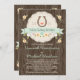 THEY'RE GETTING HITCHED! ADD THE INITIALS AND MONOGRAM OF THE BRIDE AND GROOM TO BE ON THESE LOVELY WESTERN BARNYARD STYLE WEDDING INVITATIONS WITH A BROWN HORSESHOE AND CORAL HEART ON A DELICATE CREAM PAPER DOILY LOOK DESIGN. ADD YOUR OWN WORDING TO THE PRINTED LIGHT GREEN JADE AND MINT RIBBON BANNER LOOK DESIGN. PRETTY WHITE CHERRY BLOSSOM TREE BRANCHES OF FLOWERING LAUREL AND YELLOW SUNFLOWER DAISY BROWN EYED SUSAN AND TEAL BLUE WILD ROSE WILDFLOWERS LIE UNDERNEATH. THE BACK OF THIS WOOD GRAIN OR BARREL LOOK INVITE HAS A CARVED HEART THAT CAN BE PERSONALIZED WITH THE INITIALS OF THE BRIDE AND GROOM. CUSTOMIZE THE BANNER LOOK DESIGN ON THE BACK WITH THE NAMES OF THE HAPPY COUPLE. PERFECT FOR A SPRING SUMMER FALL AUTUMN OR WINTER COUNTRY FARMHOUSE FARM OUTDOOR OR BARN THEMED WEDDING OR VOW RENEWAL CEREMONY. THE ARTWORK ON THESE RUSTIC STYLE WEDDING INVITES ARE © CHRISSY H. STUDIOS, LLC. ALL RIGHTS RESERVED.