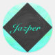 Mint Ice Blue and Black Monogram Classic Round Sticker