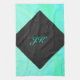 Mint Ice Blue and Black Monogram Tea Towel