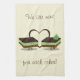 Kitchen Towel with two, mint, Nanaimo bars smiling at each other in front of a heart. The words “We are mint for each other!” are set above and below the illustration. The words can be customised.