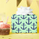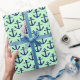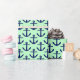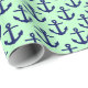 Mint, Navy Blue Anchors Pattern Wrapping Paper