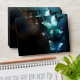 Mint night glowing butterflies on black abstract background.