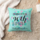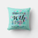 90th Birthday Pillow with customisable black lettering on abstract design of small squares and aqua colour background (customisable). Other models in pink and purple available. Matching birthday guest book and more...