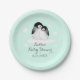 Cute penguin themed paper plates are perfect for your baby shower party. Designed to match penguin invitation collection, paper plates feature two penguins, scattered dainty white hearts and custom text in grey.