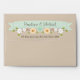 Add your names and address to this pretty custom rustic floral boho style envelope with a khaki sand coloured background and printed mint light green and jade ribbon look banner with a white cherry blossom branch, sunflower, brown eyed susan and aqua teal blue wild rose tulip and posy laurel wreath design. These envelopes perfectly compliment a bohemian chic, country western, farm, farmhouse, barn, barnyard or outdoor garden themed special occasion like a wedding, bridal or couples shower, engagement party, rehearsal dinner or anniversary celebration. Artwork and design © Chrissy H. Studios, LLC. All rights reserved.