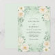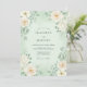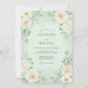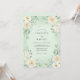 This design evokes a serene and romantic atmosphere with its soft mint backdrop and delicate floral arrangements. Creamy white roses and subtle green foliage create an elegant, airy feel perfect for a springtime occasion. The overall impression is one of gentle beauty and understated charm.