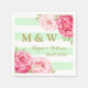 Mint Stripes Pink Watercolor Wedding Monogram Napkin