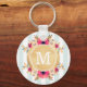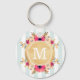 Mint Stripes Watercolor Flowers Faux Gold Monogram Key Ring