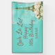 Mint green and teal blue with gold glitter Sweet 16 Happy Birthday banner with Paris' Eiffel Tower and ivory floral.