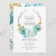 Ornate pastel mint floral wedding invitation with accents of gold customisable to your event specifics.