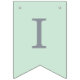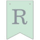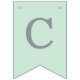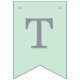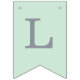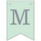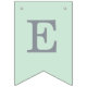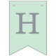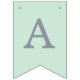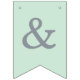 A simple, minimalist bunting flags banner for a mint wedding, with the names of the bride and groom, with grey caps on mint background.