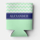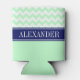 Mint White Chevron CB Navy Name Monogram Can Cooler