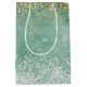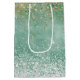 Mint White Glam Gold Sparkle Glitter Medium Gift Bag
