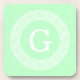 Mint White Greek Key Rnd Frame Initial Monogram Coaster