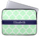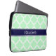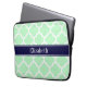 Mint White Moroccan #5 Navy Blue Name Monogram Laptop Sleeve