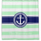 Mint White Navy Blue Nautical Stripe Anchor Shower Curtain