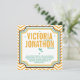 Cute Whimsical Mint Hearts with Modern Fonts and Mustard Yellow and Mint Modern Modern Geometric Zig Zag Pattern Monogram on Back Wedding Invitation- Save the Date Love Joy Happy Happy Turquoise Aqua Red Modern Typography Wedding Postage