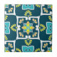 Minty and teal Azulejos with yellow and white elements, pattern inspired by famous Portuguese tile-work, Azulejos. . Perfect as home deco or as a gift for trendy person. Ceramic tile with Azulejos