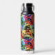 The bottle looks even better in real life. The ice cubes I put in lasts all day! I have my bottle with me all the time. It's summer and having something cold to drink feels amazing. With this bottle I always have something super cold. I have only tried the hot drink once and it lasted a long time as well. The color blue is a navy blue and the white printed on it is vibrant. It printed perfectly. I love my personalized smile water bottle.