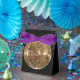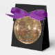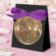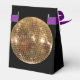 Black tent style with purple ribbon favour box with an image of a dazzling mirrored disco ball. Change the ribbon to gold for a more elegant look. See the entire Disco 70s Favour Box collection in the PARTY FAVORS section.