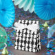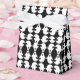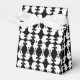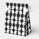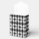 A fun design for young and old. This black and white favour box features the mirrored image of a ghost, in a repeating pattern. The black background and ribbon tie can be customised.