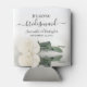 These beautiful can coolers are a fun and thoughtful way to thank and recognise the bridesmaids at your wedding. They feature a beautiful design with elegant script lettering and a single long stemmed ivory or white rose lying on its side reflecting in a pool of water. The text includes her name with the word "bridesmaid" spelled out in elegant script calligraphy. There is room for the names of the couple and wedding date below.