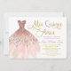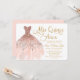 Invitacion rosada y dorada de "Mis Quince Años" con vestido rosa.