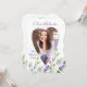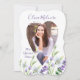 Mis Quince Anos photo Quinceanera Invitation for your daughter's 15th Birthday celebration. Pretty wildflower theme with purple and lilac wild flowers and daisies on a white background. Delicate and feminine watercolor floral design with elegant handwritten style script for the Quinceañera's name. The photo template displays your picture in a heart shape (if you have any problems with placement, I recommend cropping your picture to a vertical portrait shape before uploading).
