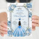 Mis Quince Blue Floral Silver Crown Quinceañera Invitation