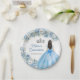 Mis Quince Blue Floral Silver Crown Quinceañera Paper Plate