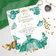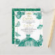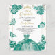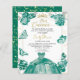 Unmask the enchanting allure of your quinceanera celebration with unique red dress-themed invitations. These bespoke invitations, inspired by lush emerald green florals and whimsical butterflies, not only set the anticipation for the event but also hint at the stunning emerald green quinceanera dress reveal. They're completed with confetti details and a tiara accent, embodying the celebratory grandeur of the special day.