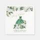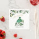 Emerald Green Quinceanera napkins with green and gold princess gown and watercolor floral arrangements of white peony flowers and greenery. Mis Quince is lettered in swirly calligraphy and your personalised wording in elegant serif typography. Please see my Emerald Greenery & White Peony collection for matching items or, message me to create the templates you need.
