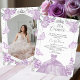 The "Mis Quince Photo Invitation Lavender Floral Silver" is a beautifully designed invitation perfect for a Quinceanera celebration. This invitation features vibrant watercolor lavender floral designs intertwined with elegant butterflies and a tiara accent, adding a touch of charm and joy to the occasion. It is created by CaMiDesigns. For orders, shipping, product information, and additional assistance, please contact Zazzle Customer Care directly.