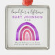 This beautiful rainbow remembrance ornament is a poignant way to honour a baby after a miscarriage. The words underneath the watercolor rainbow say: We will hold you in our hearts until we can hold you in heaven. You can personalise the design with their name and the date of loss.