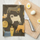 Boxer, bulldog, chihuahua and dachshund in a cheerful pattern on a brown background.