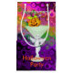 Add a whimsical touch to your Halloween cocktail party with this fun design featuring a mischievous pumpkin perched on the top of a cocktail glass with a ghostly stem featured on neat gift bags. The colourful rotating lights background is very festive. Host names and party text may be personalised in the templates included on the product page.