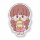 A cute, cartoon-style #Kawaii character featuring a girl with brown #Pigtails, wearing a pink #Dress and #Glasses, holding a yellow #BubbleTea drink with a smiling face design. The character promotes a cheerful and encouraging #PositiveVibes theme with the message "Shine in your own little way every day." Additional playful #JapaneseCulture text includes expressions of #Fun and #Friendship.